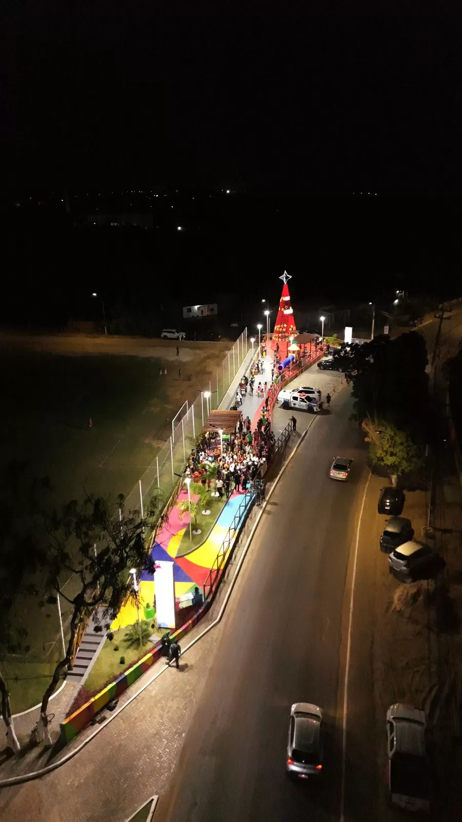 A nova praça conta com pergolados, playground, bancos, paisagismo moderno, arquibancada e uma quadra de areia, pensada para incentivar a prática esportiva e oferecer opções de lazer para pessoas de todas as idades. Para deixar o ambiente ainda mais especial neste período natalino, o espaço recebeu uma árvore de Natal gigante, doada pelo Governo do Estado do Maranhão, que passou a encantar moradores e visitantes.